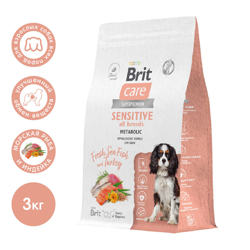 Корм Brit Care Dog Adult Sensitive Metabolic (Рыба, Индейка), 3кг