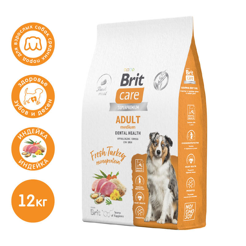 Корм Brit Care Dog Adult Medium Dental Health (Индейка), 3 кг / 12кг