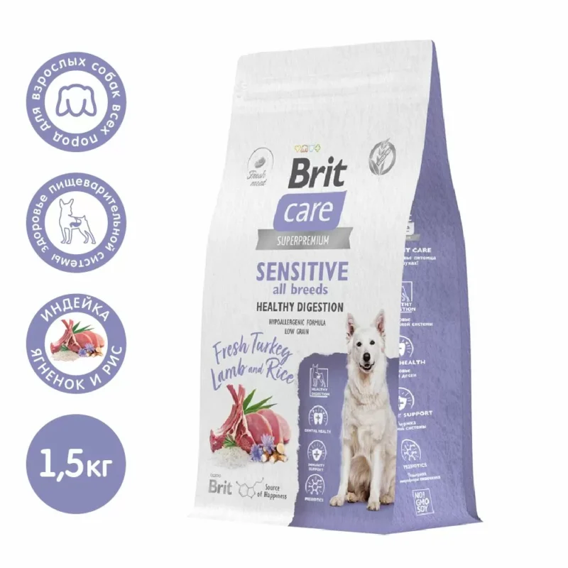 Корм Brit Care Dog Adult Sensitive Healthy Digestion (Индейка, ягненок), 3 кг / 12кг